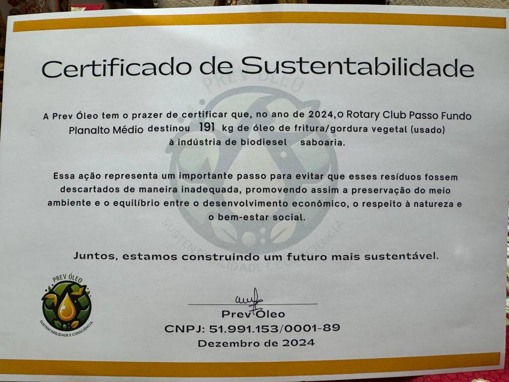 O Rotary Club de PF Planalto Médio continua recolhendo oleos de cozinha usados para a reciclagem. A magia do Rotary faz bem ao meio ambiente.